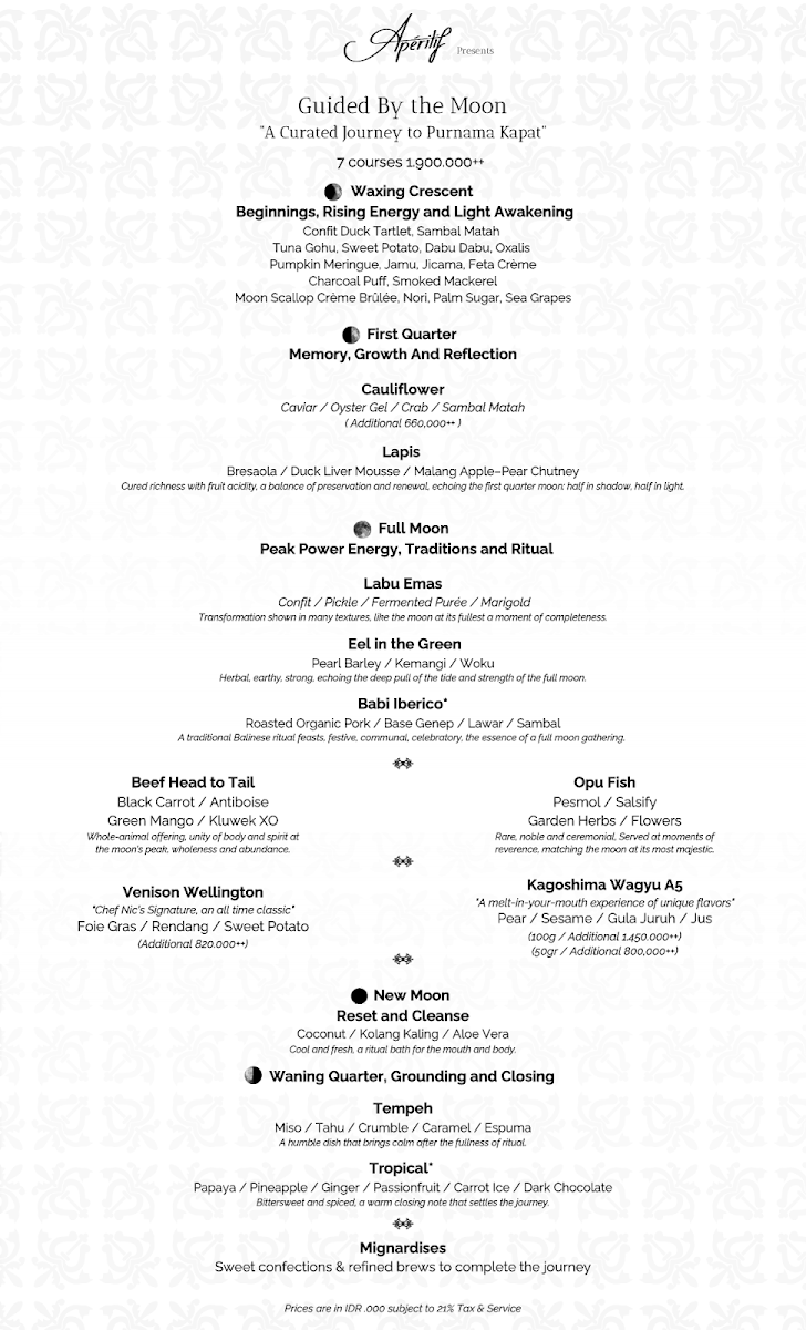 Welcome to Apéritif Restaurant - Fine Dining in Ubud, Bali, a culinary haven nestled in the heart of Ubud, known for its stunning natural beauty and rich cultural heritage. Located at Br. Nagi, Jl. Lanyahan, Petulu, Kecamatan Ubud, Kabupaten Gianyar, this fine dining gem is more than just a restaurant; it's an immersive gastronomic experience that harmoniously blends traditional Balinese flavors with contemporary European cuisine.